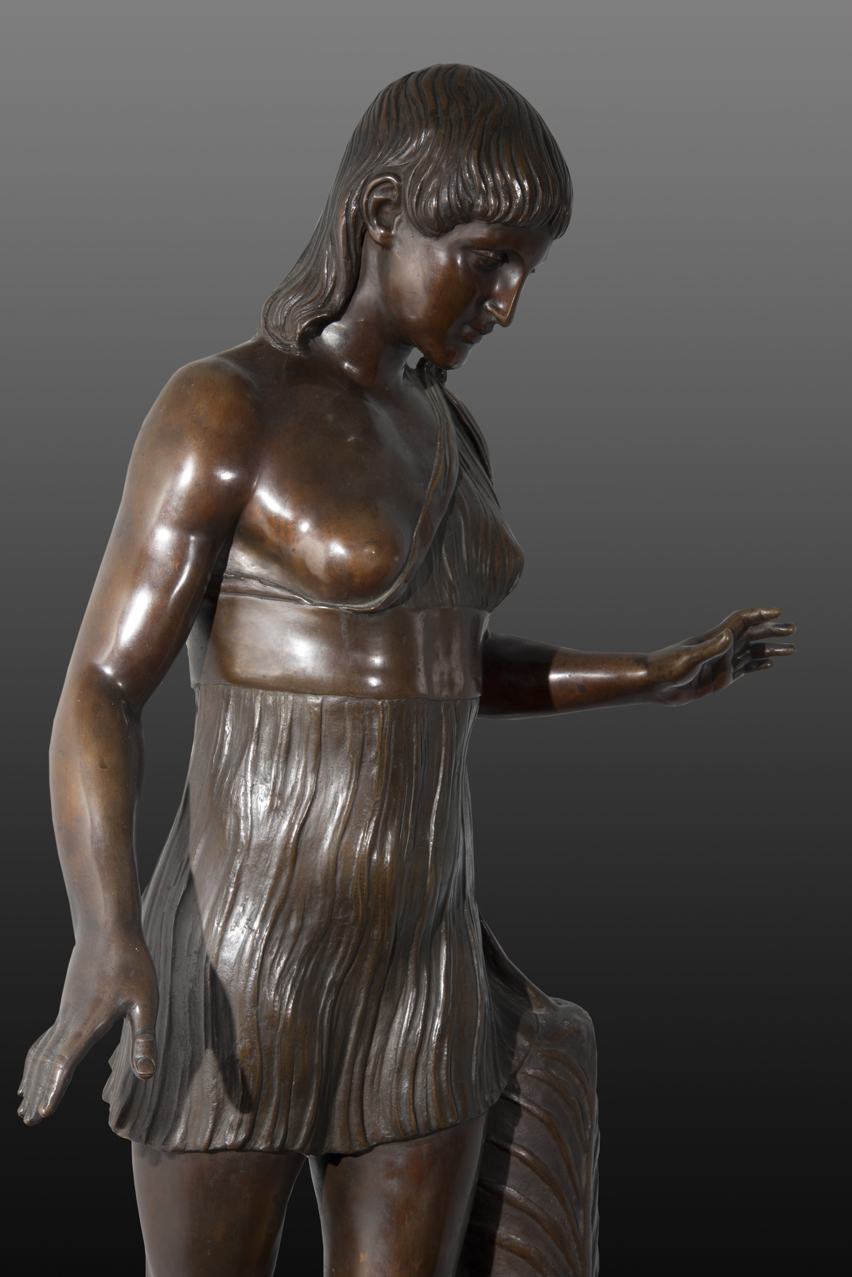 Scultura in bronzo patinato raffigurante "Vergine spartana".