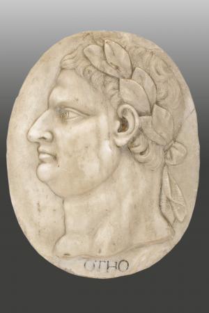 Bassorilievo in marmo bianco del profilo dell'imperatore Otone.