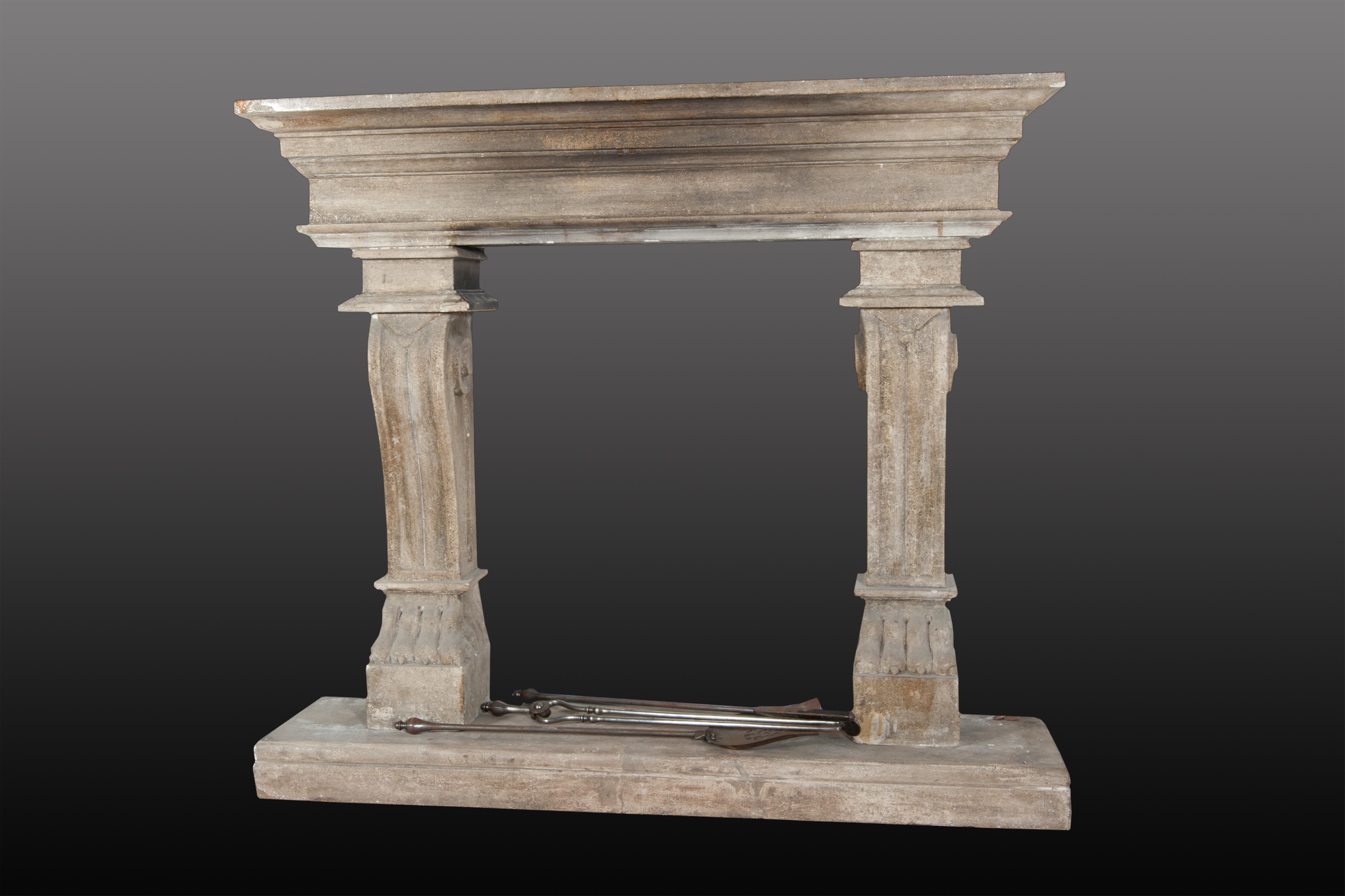 Camino in scagliola napoletano con cartocci e zampe feline.
