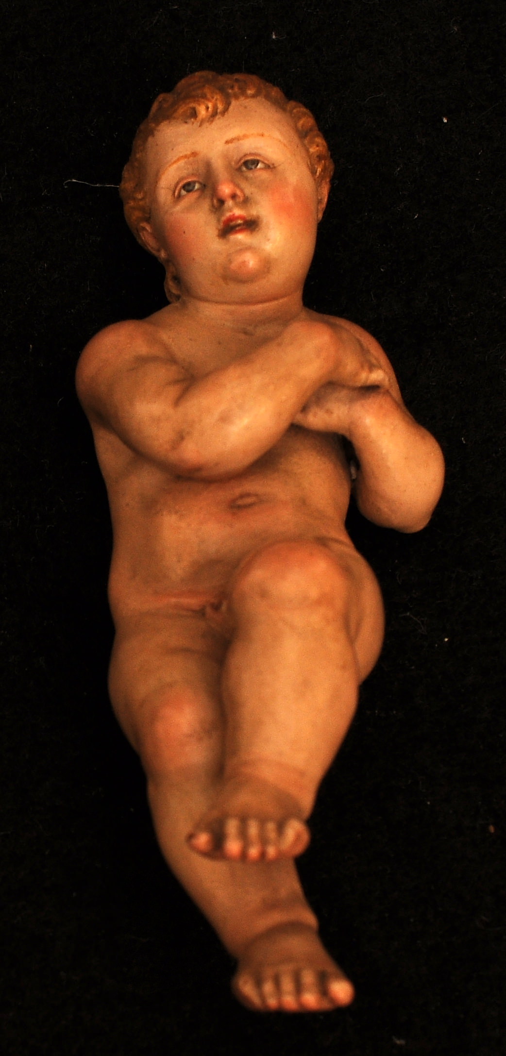 Il presepe è composto da Giuseppe e Maria (alti circa 40 cm) con il bambino Gesù ed, in alto, da due teste di angeli.